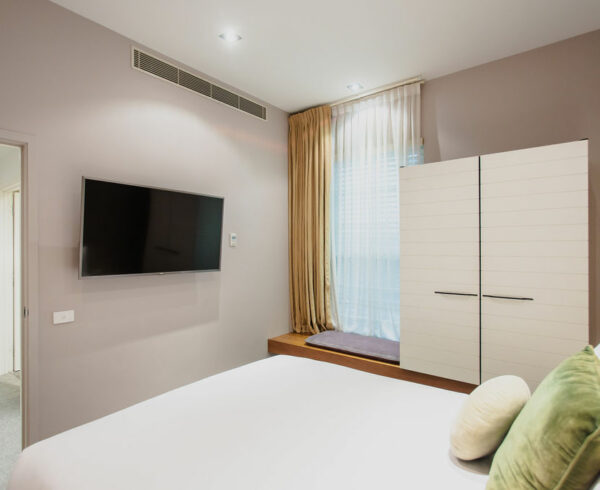 Our Double Deluxe Room features two adjoining rooms with one Queen and one Double Bed, ideal for families who want more space.